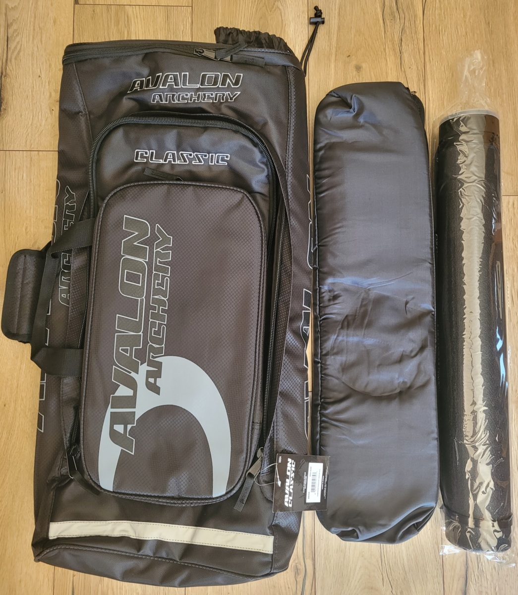 Contient : pochette 3 compartiments pour branches, poignée d'arc et autre matériel + tube à flèches neuf
